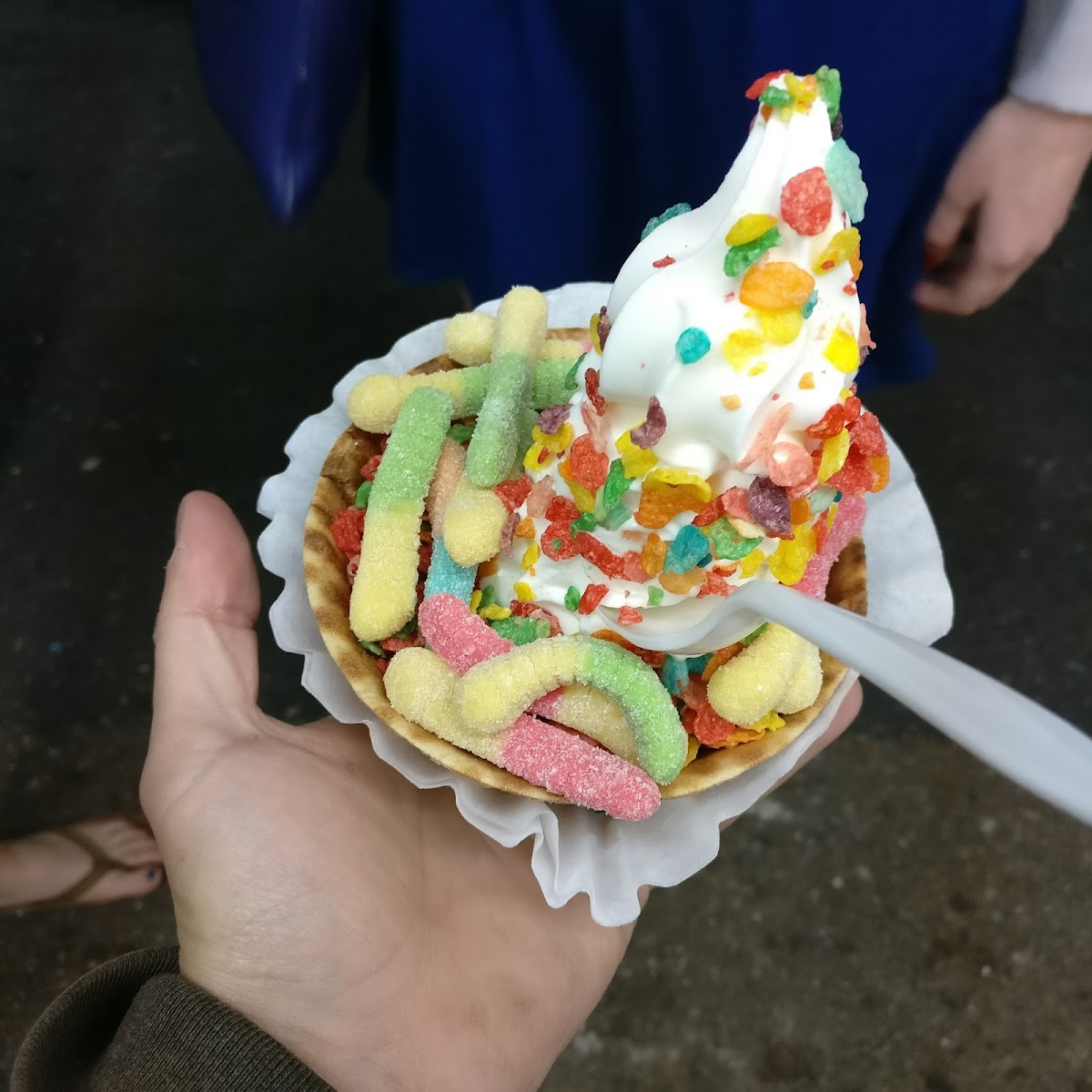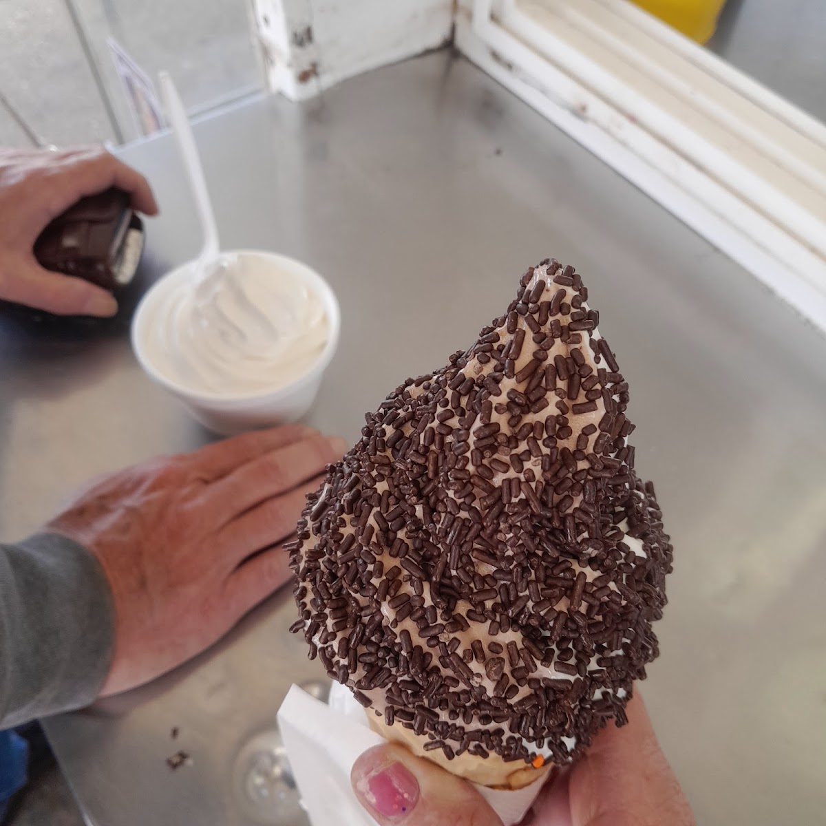 Vanilla Soft Serve in a Waffle Cup with Cheryl and Sprinkles
